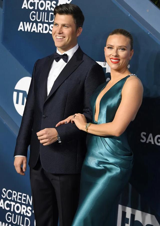 Scarlett johansson wore her massive $400,000 engagement ring to the 2020 golden globes.